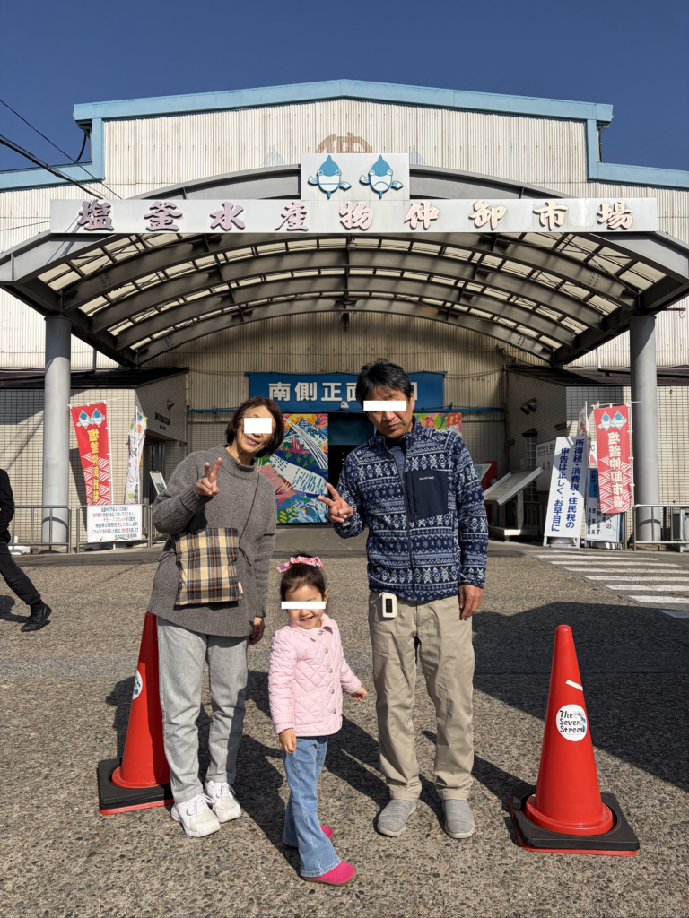 翌日はお雛様の前で写真をとり、神社そして市場に寄って、お昼は美味しいとんかつ定食を食べて帰ってきた。