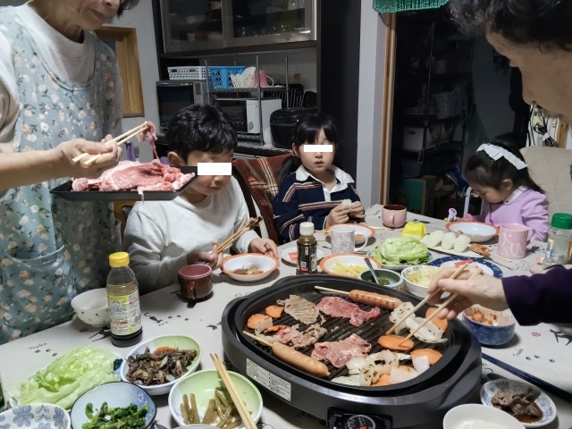 その後家に戻り、私が貰ったA5と長男が買った牛肉で焼肉。