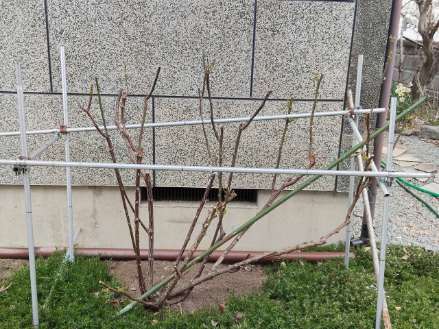 ばらは新芽が出ており、手抜きして早めに片付けないといけない。
